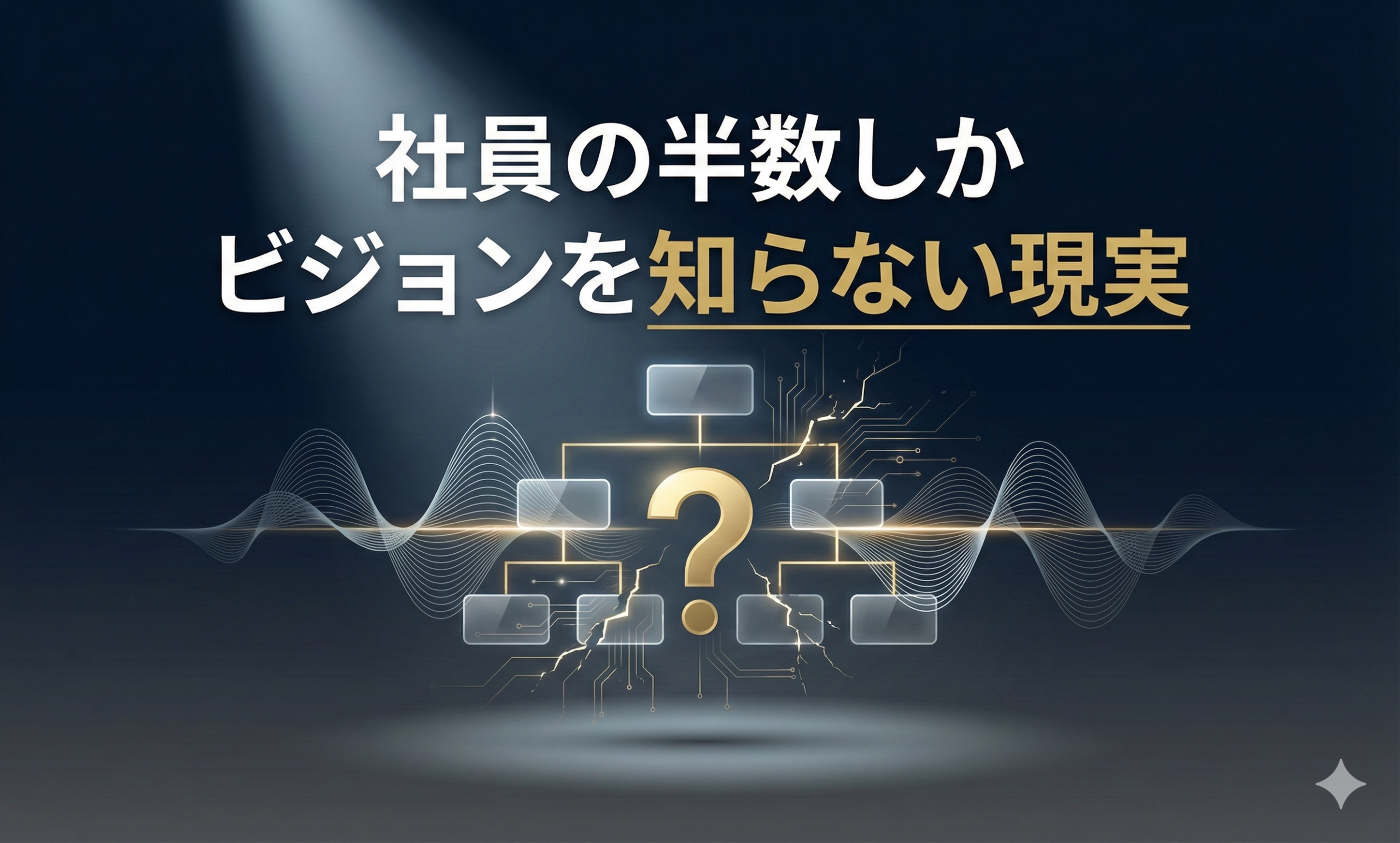 社員の半数近くが会社のビジョンを知らないという現実は、多くの企業が直面している課題です。ビジョンが浸透していないと、エンゲージメントの低下、生産性の停滞、離職率の増加といった負のスパイラルに陥ります。